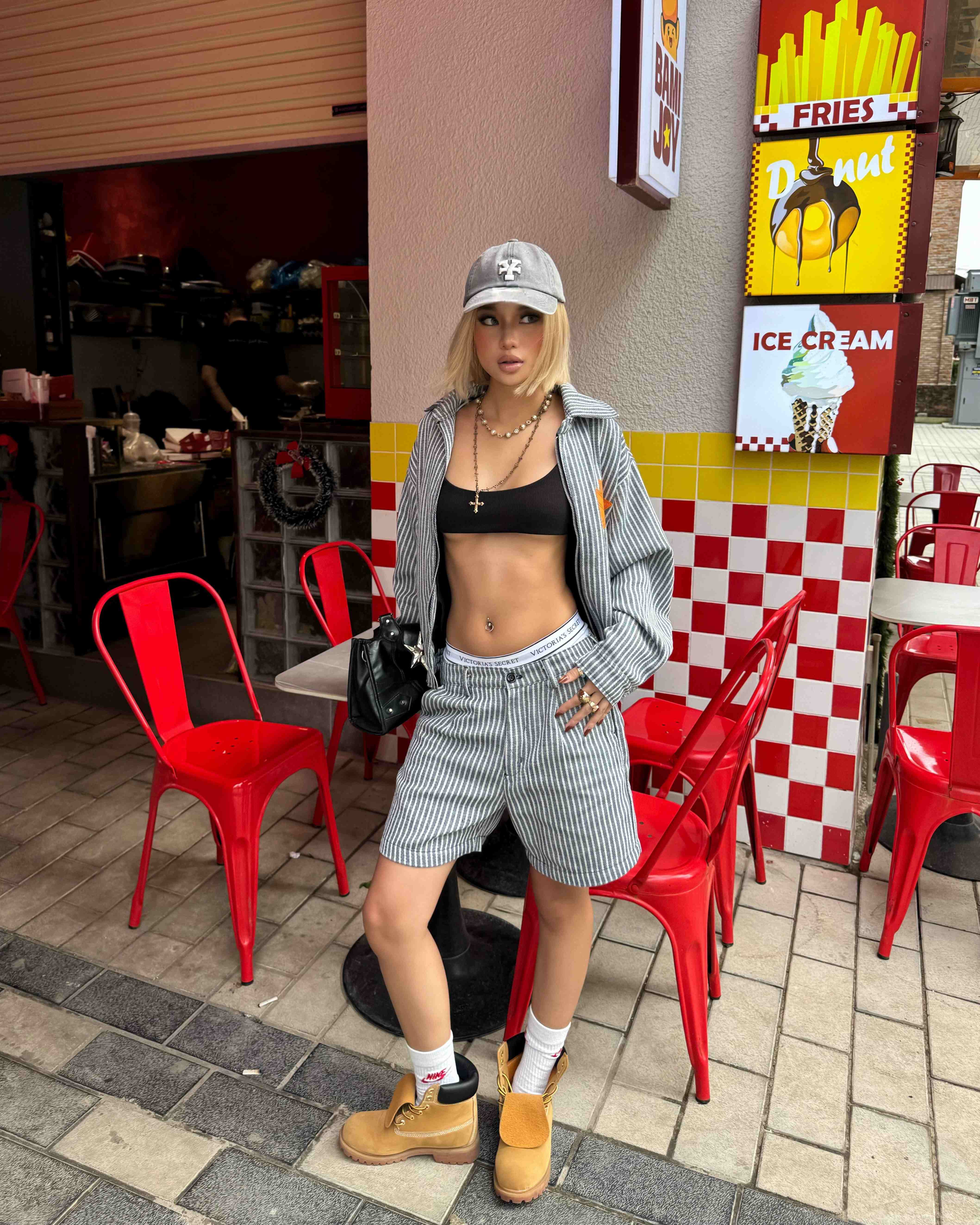 Mẫu nữ cao 1m68 - 48kg mặc sản phẩm size M.