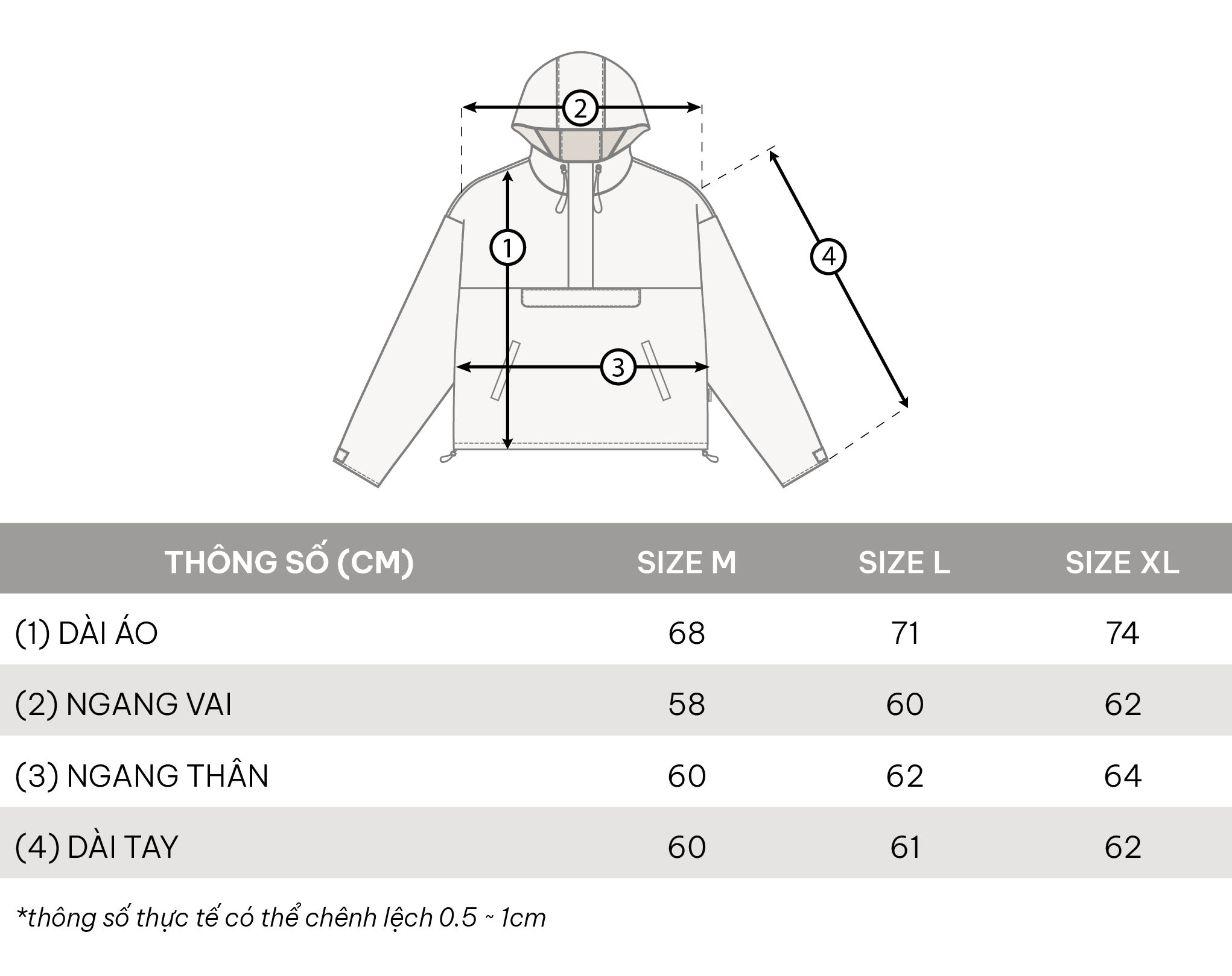 • Kích thước: M - L - XL