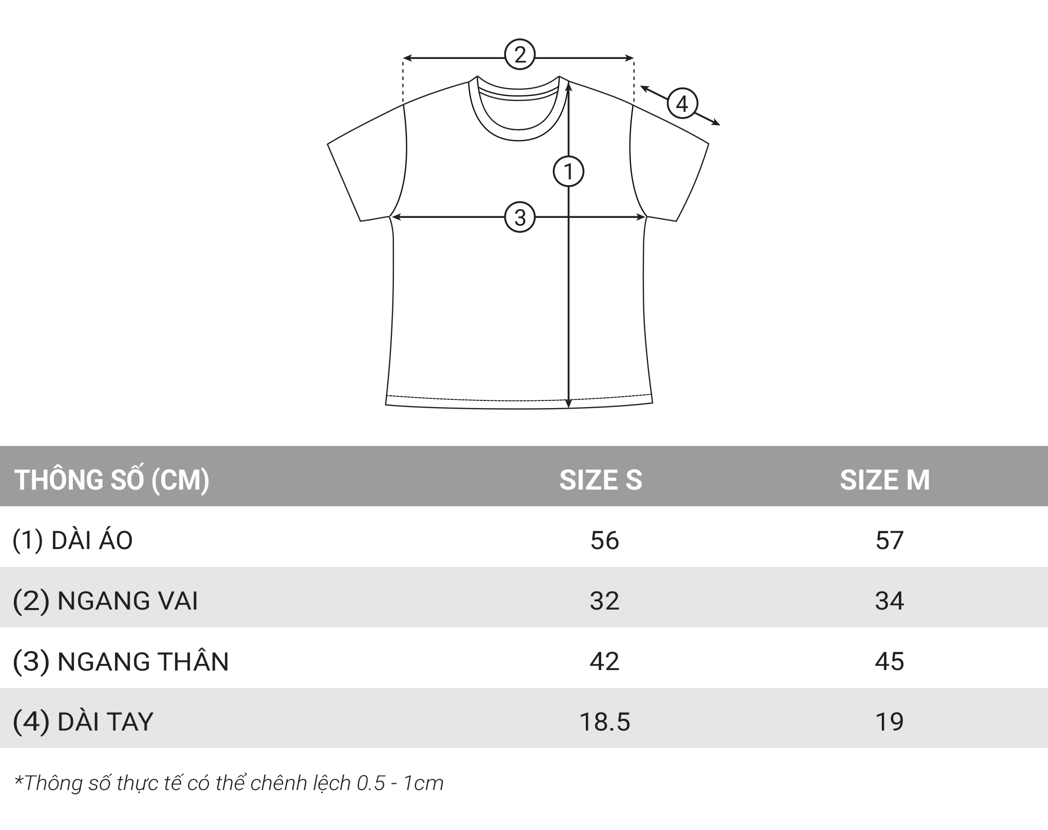 Chi tiết sản phẩm: • Kích thước: S - M • Chất liệu: Sợi nhân tạo. • Regular Baby Tee • Artwork được áp dụng kỹ thuật in lụa Size Chart: