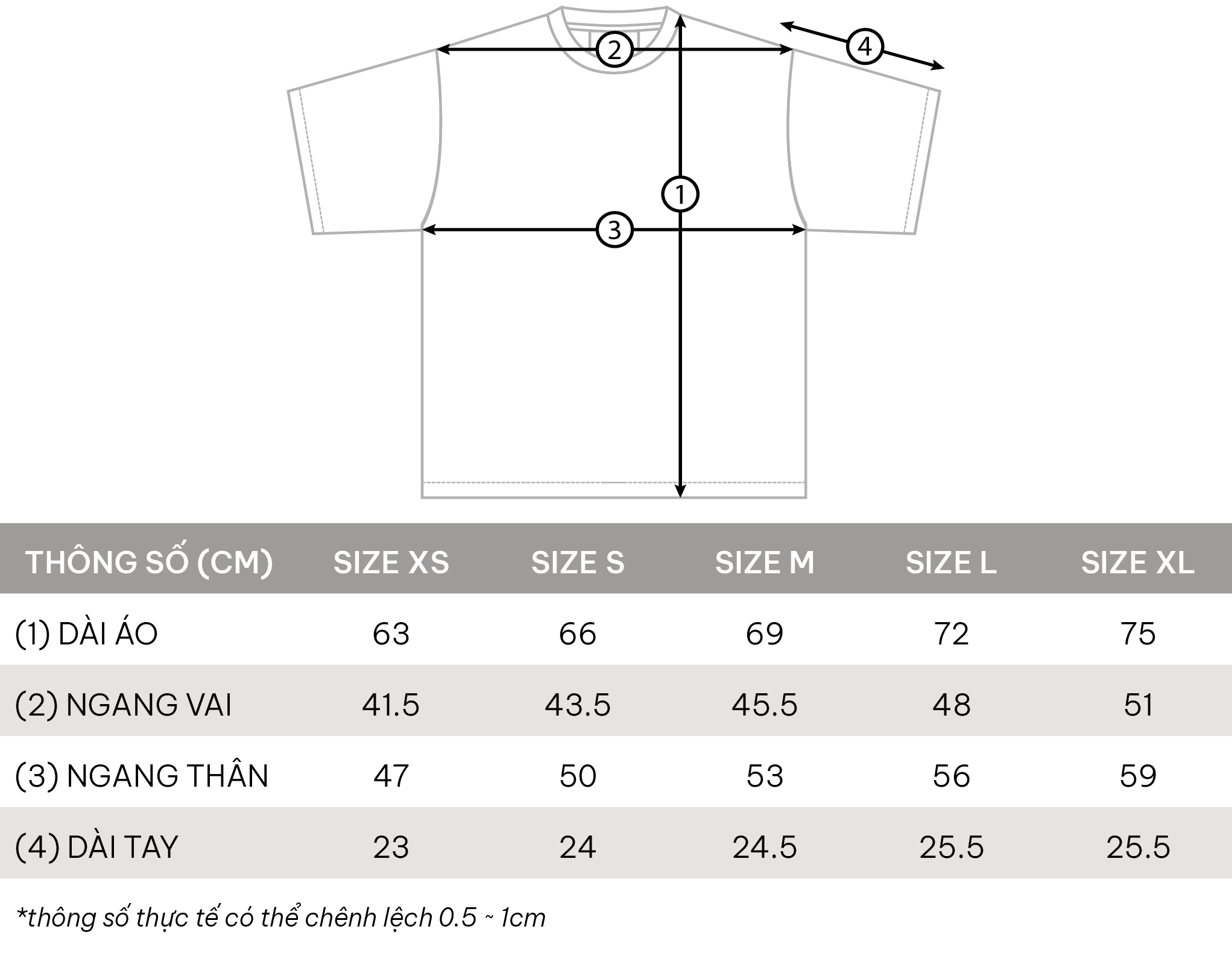 • Kích thước: XS - S - M - L - XL