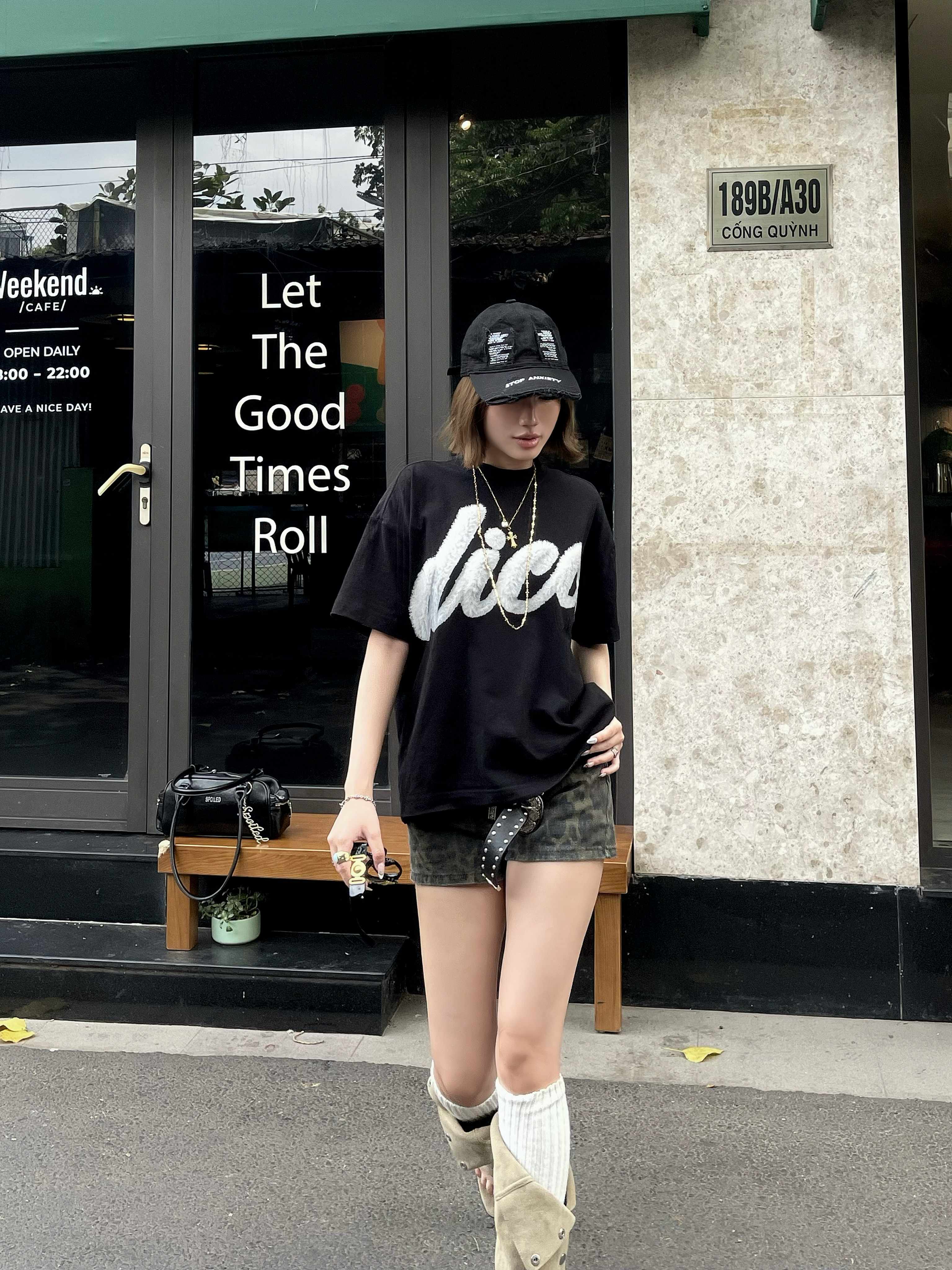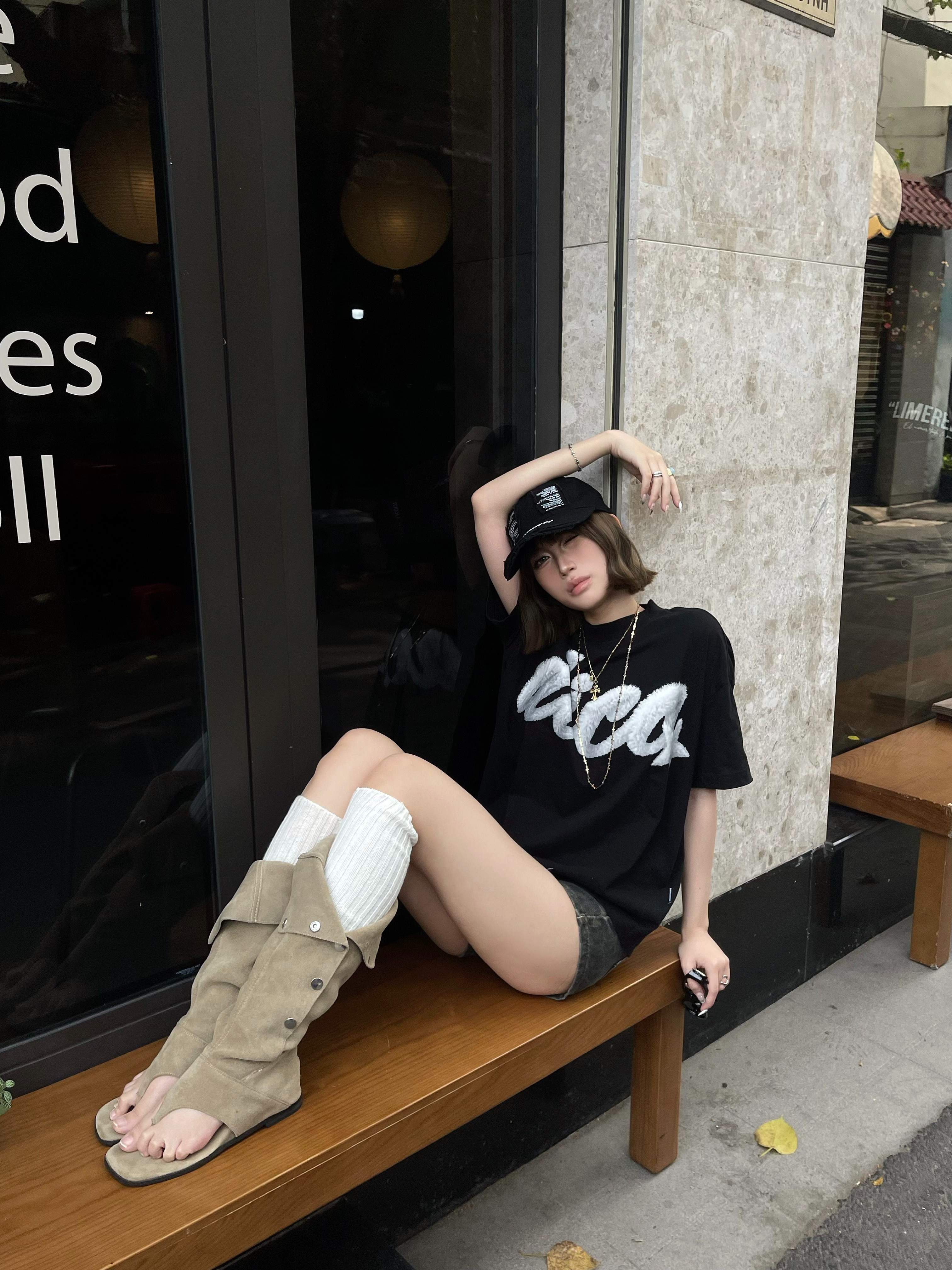 Mẫu nữ thứ hai cao 1m72 - 58kg mặc sản phẩm size M