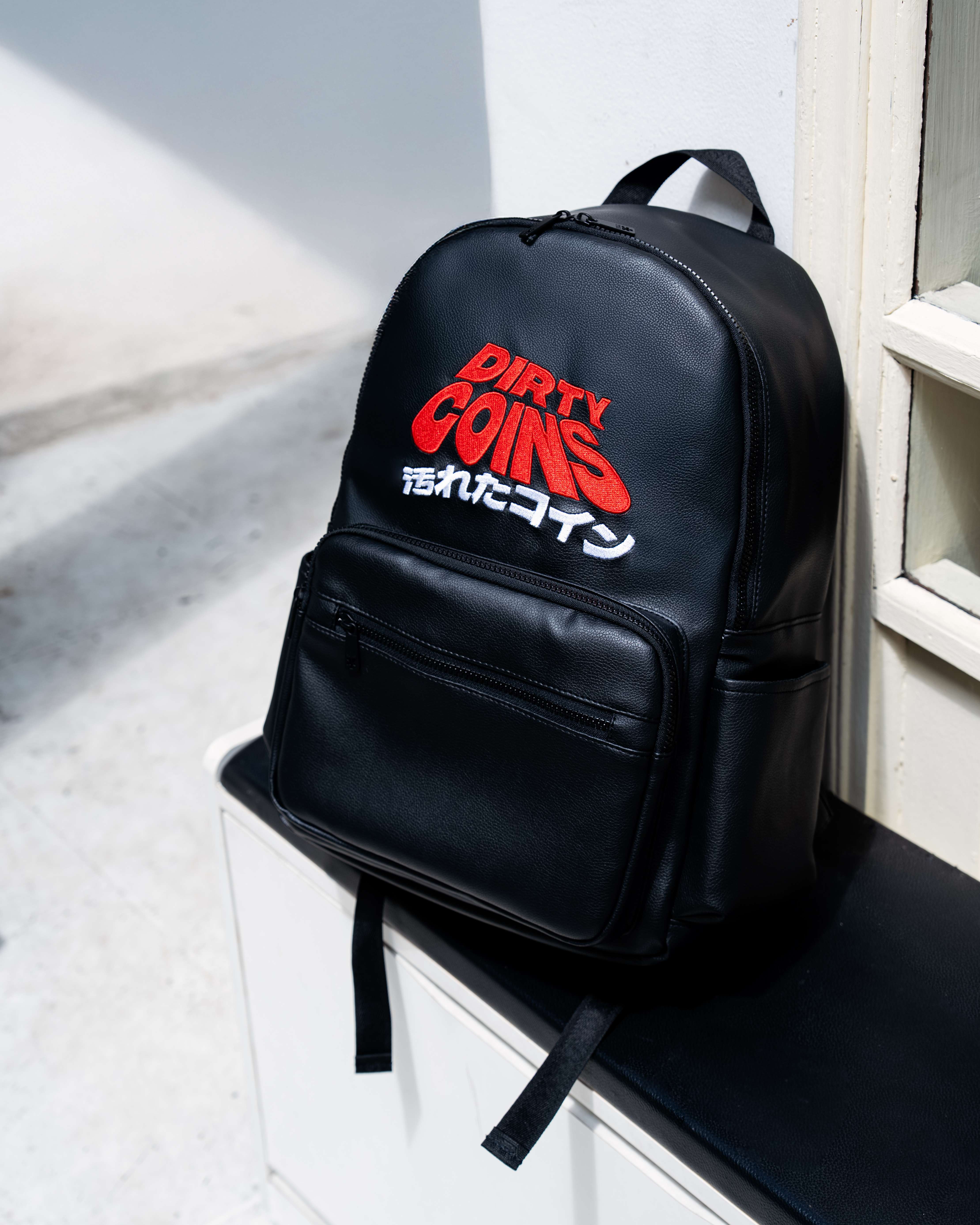 • Mặt trước ba lô thêu logo DirtyCoins Wavy.