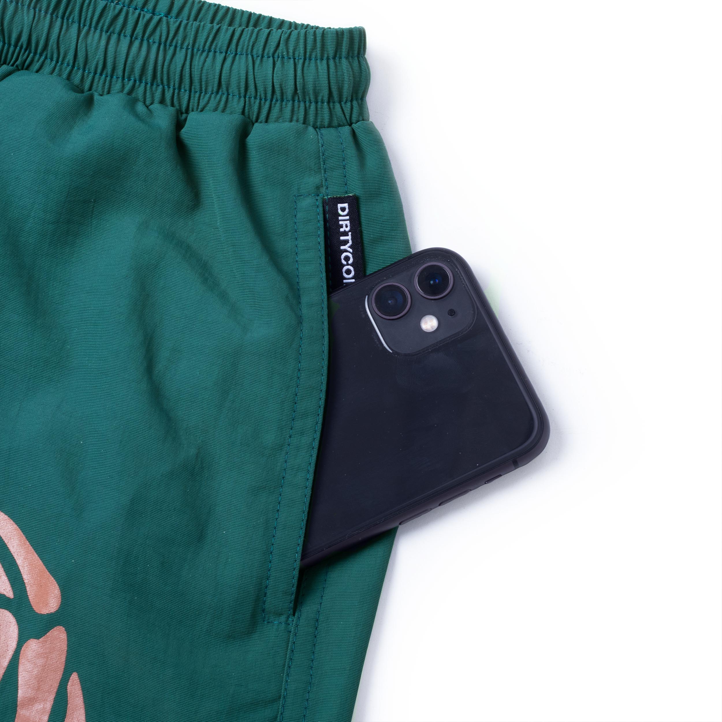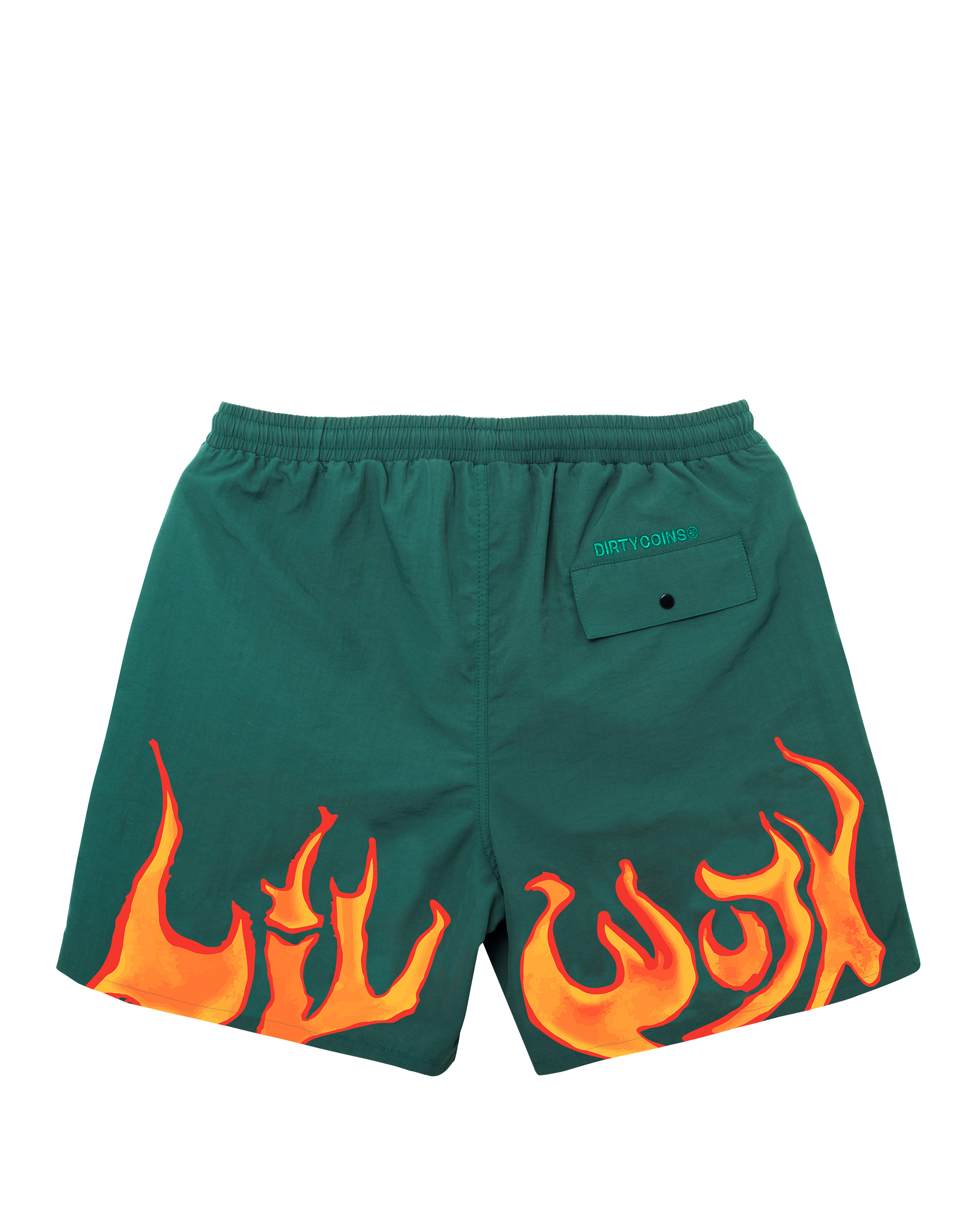 Chi tiết sản phẩm: • Chất liệu: vải sợi tổng hợp. • Hình mặt trước và sau quần áp dụng kĩ thuật in lụa và in Trame. • Lưng thun. • Có túi hai bên. • Túi quần sau có nắp kèm nút bấm. • Logo DirtyCoins thêu trên túi. Size Chart:
