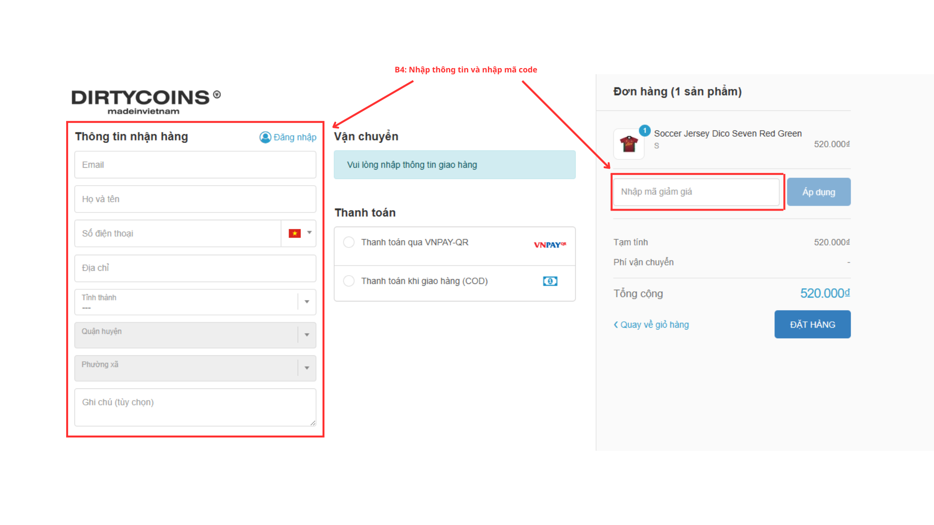 Bước 4: Điền thông tin đặt hàng và nhập mã code