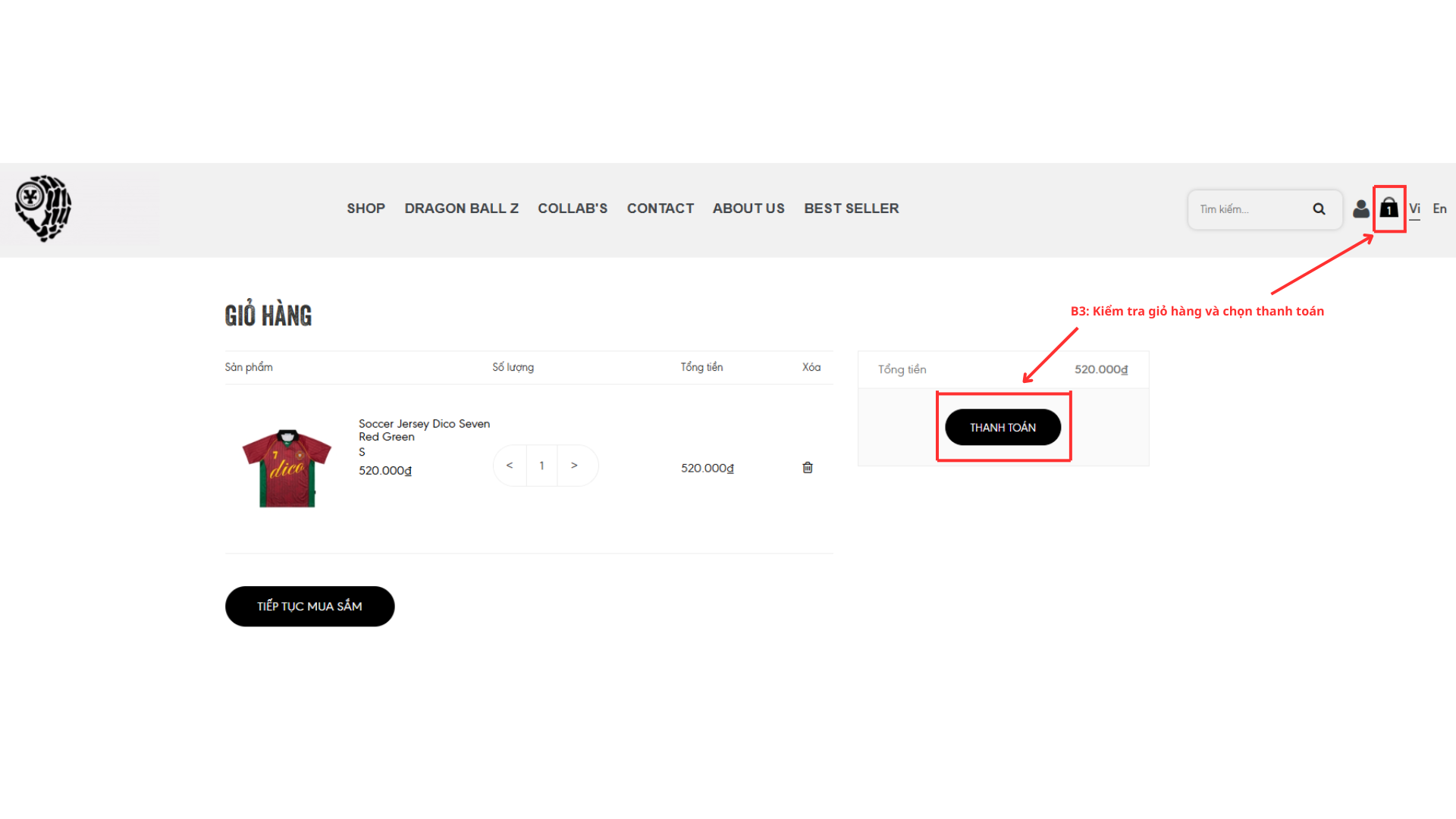 Bước 3: Kiểm tra giỏ hàng và chọn thanh toán